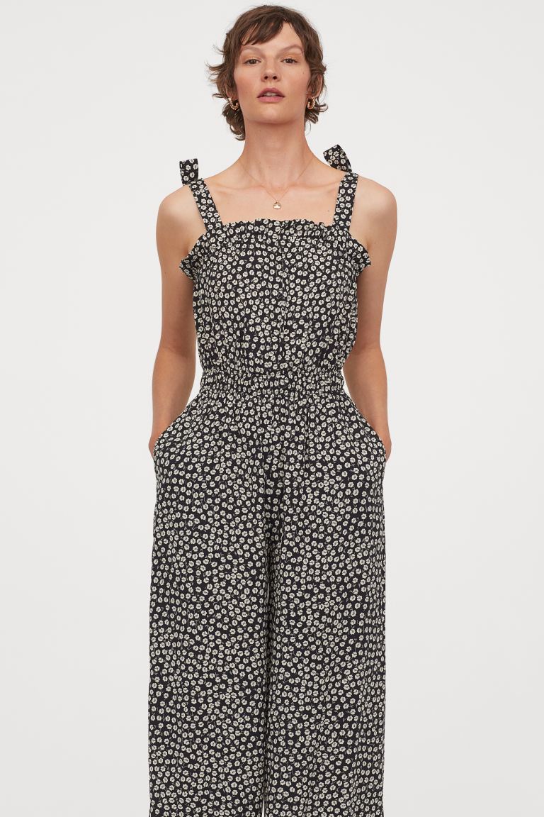 Ruffle-trimmed Jumpsuit - Black/white floral - Ladies | H&M US