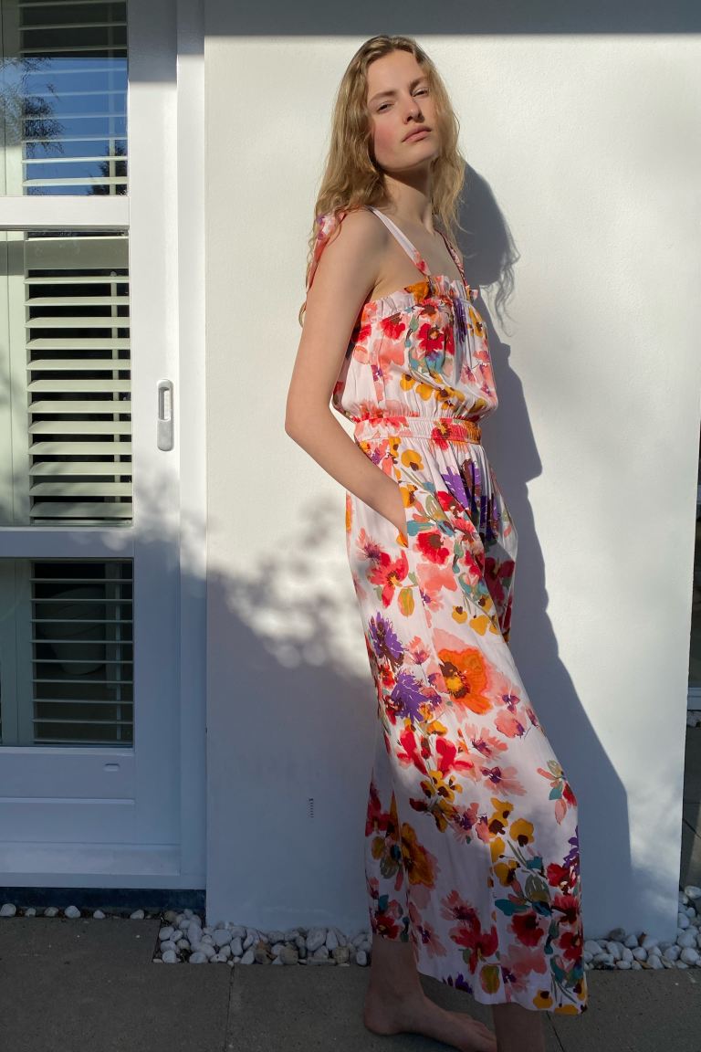 Ruffle-trimmed Jumpsuit - Light pink/large flowers - Ladies
