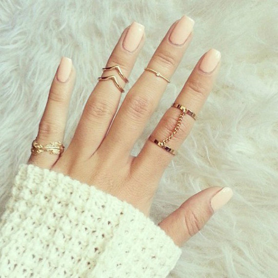 SALE! Gold Tone 6 Piece Midi Ring Set - Knuckle Rings, Stack Above, Chevron Dainty Rings - Free UK Delivery!