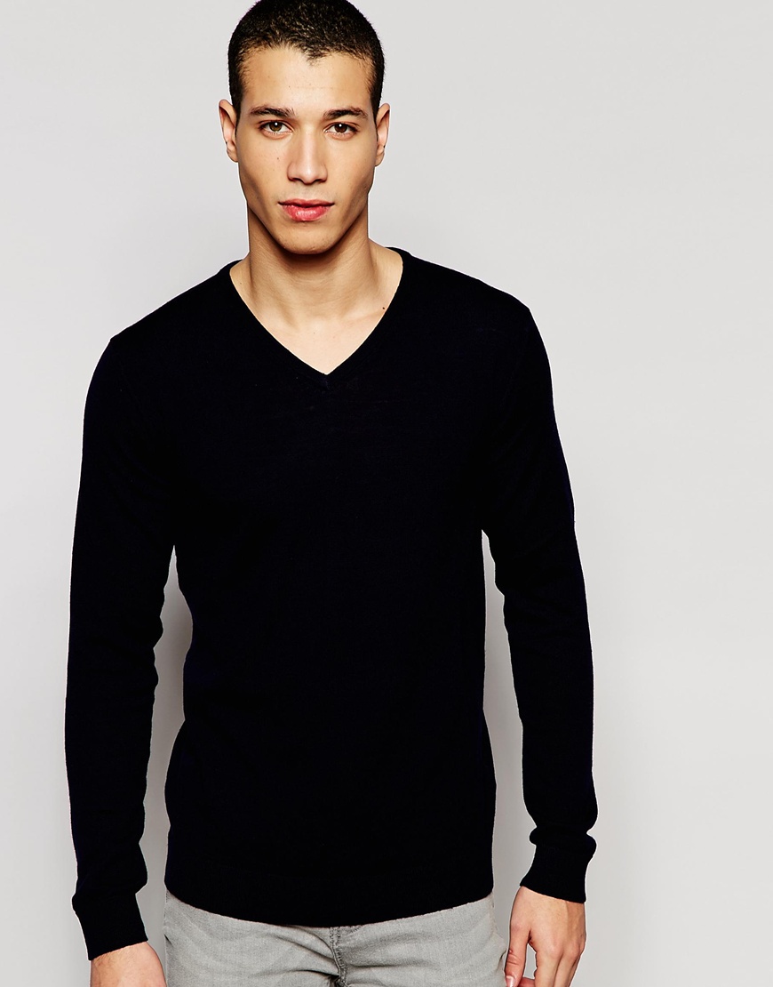 Selected Knitted V-Neck Neck Sweater In Merino Wool