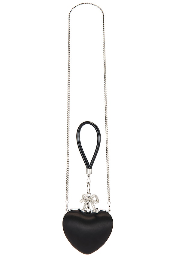 self-portrait Black Satin Top Handle Heart Clutch in Black | REVOLVE