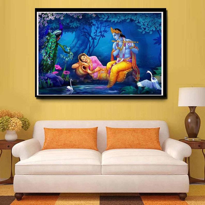 Serene Radha Krishna Wall Art Indian Painting Home Office image 0