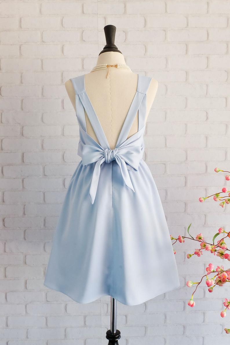 Serenity blue dress Blue Bridesmaid dress Wedding Prom dress Cocktail Party dress Evening dress Backless bow dress