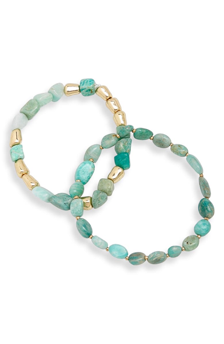 Set of 2 Beaded Stretch Bracelets, Main, color, AMAZONITE- GOLD
