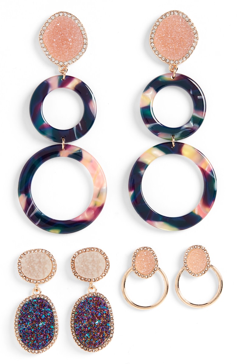 Set of 3 Hoop & Drop Earrings, Main, color, MULTI