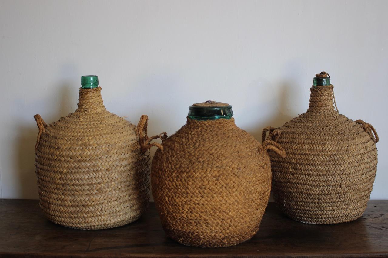 Set of Three Large Mid 20th Century Spanish Wine Bottles