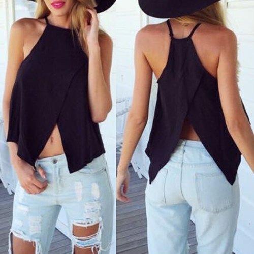 Sexy Round Collar Sleeveless Solid Color Asymmetrical Tank Top For Women