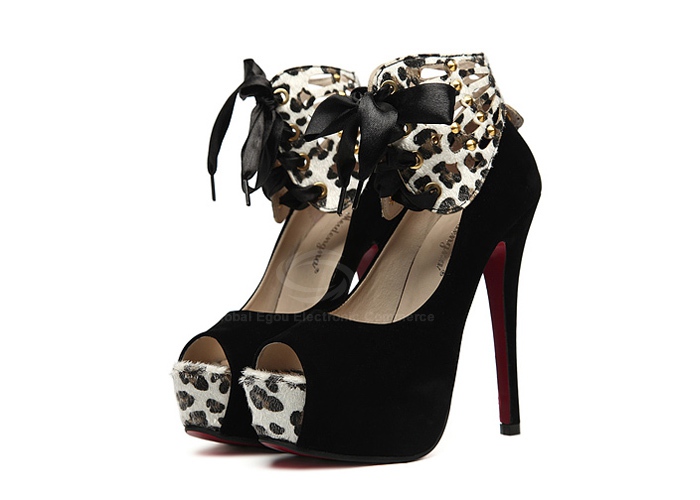 Sexy Women's Peep Toed Shoes With Lace-Up and Leopard Veins Design (BLACK,39) | Sammydress.com