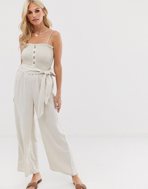 shirred bodice jumpsuit in beige