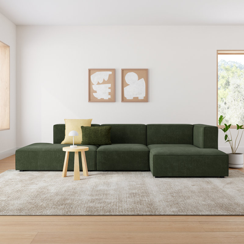 Shonnard 3 - Piece Modular Upholstered Chaise L-Sectional, Right Hand Facing, Olive Green Performance Corduroy