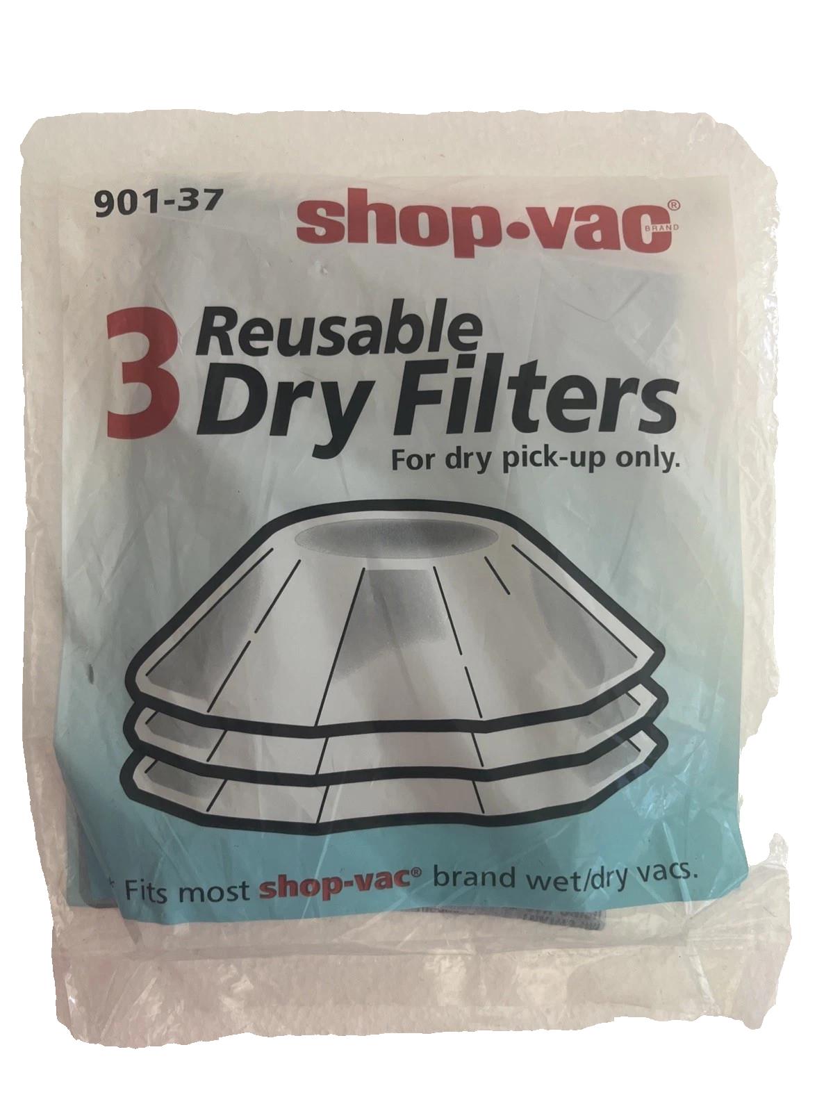 Shop Vac 3 Reusable Dry Pick-Up Only 901-37 Most Wet /Dry Vacs