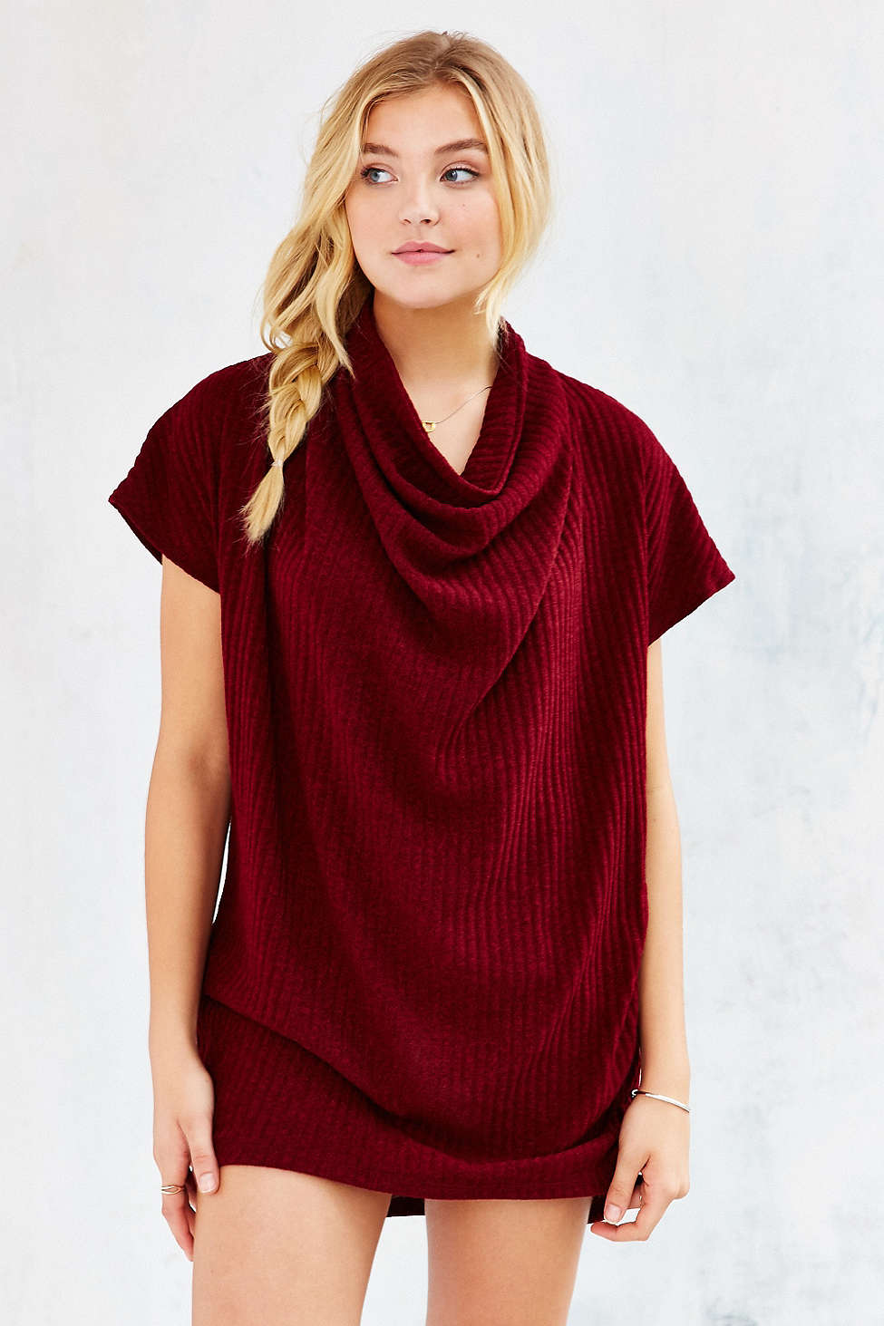Silence Noise Ribbed Cowl-Neck Mini Dress
