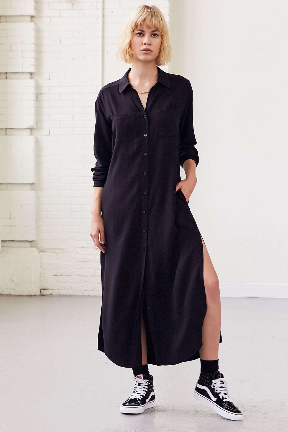 Silence Noise Side-Slit Maxi Shirt Dress