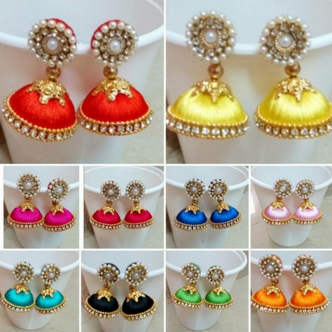 Silk Thread Jhumki Earrings
