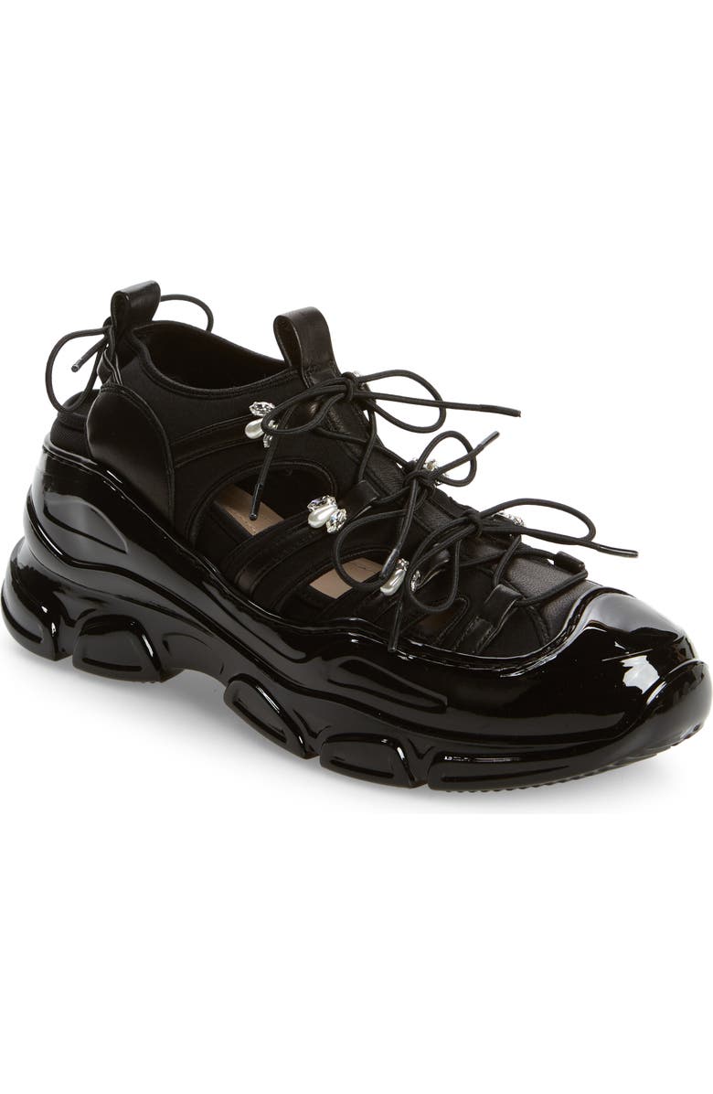 Simone Rocha Beaded Classic Tracker Sneaker, Main, color, Black Nappa/ Pearl/ Clear