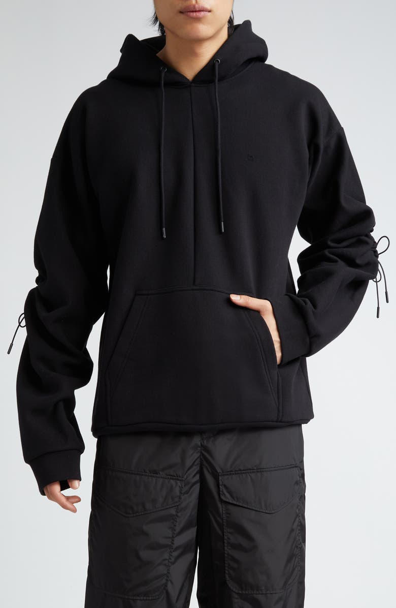 Simone Rocha Ruched Cutout Cotton Blend Hoodie, Main, color, Black