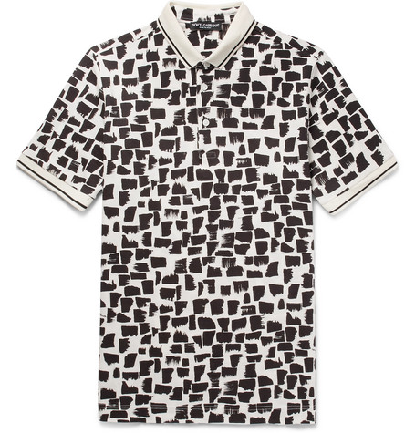 Slim-Fit Printed Cotton-Piqué Polo Shirt