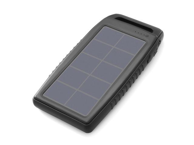 Solar Charger 10000mAh Rain-resistant Dirt/Shockproof Dual USB Port Portable Charger Battery with High-Efficiency SunPower Solar Panel Backup Power Pack for All USB Supported Devices, Black
