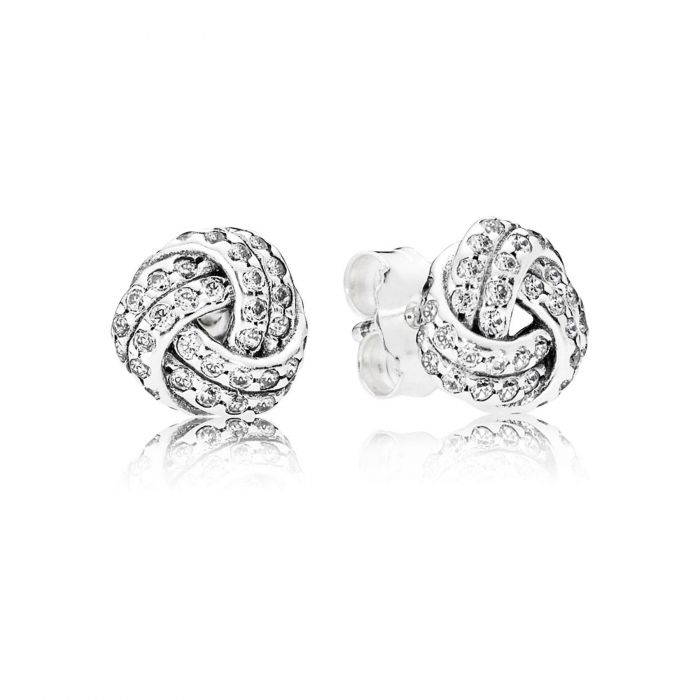 Sparkling Love Knot Stud Earrings with Clear Cubic Zirconia