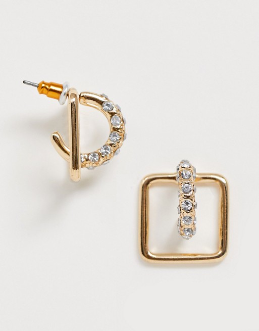 square hoop earrings with pave bar detail in gold tone