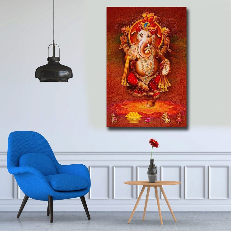 Standing Ganesha Canvas Wall Art Indian Painting Canvas image 0