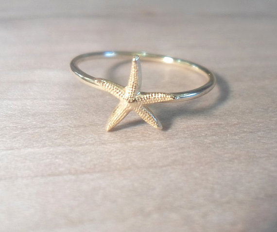 Starfish Knuckle Ring-Layering Above the Knuckle Ring Gold Brass Stackable Midi Ring-Starfish ring