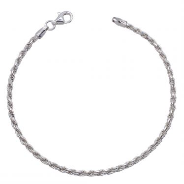 Sterling Silver 2.3mm diamond cut Rope link bracelet with lobster clasp - Click to magnify
