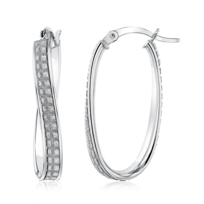 Sterling Silver Oval Twist Glitter Hoop Earrings
