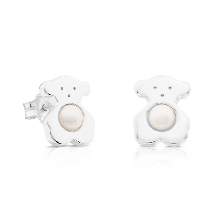 Sterling Silver Sweet Dolls Bear with Fresh Water Cultured Pearl Earrings