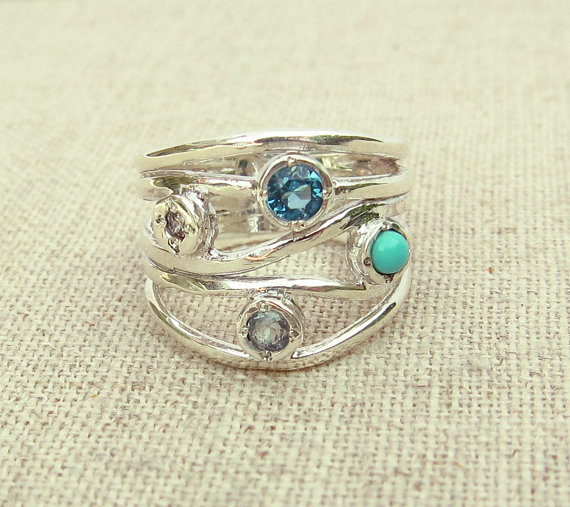 Stone Ring - Blue Multistone Ring - Statement Ring - Turquoise Ring - Blue and Silver Ring - Ready to Ship