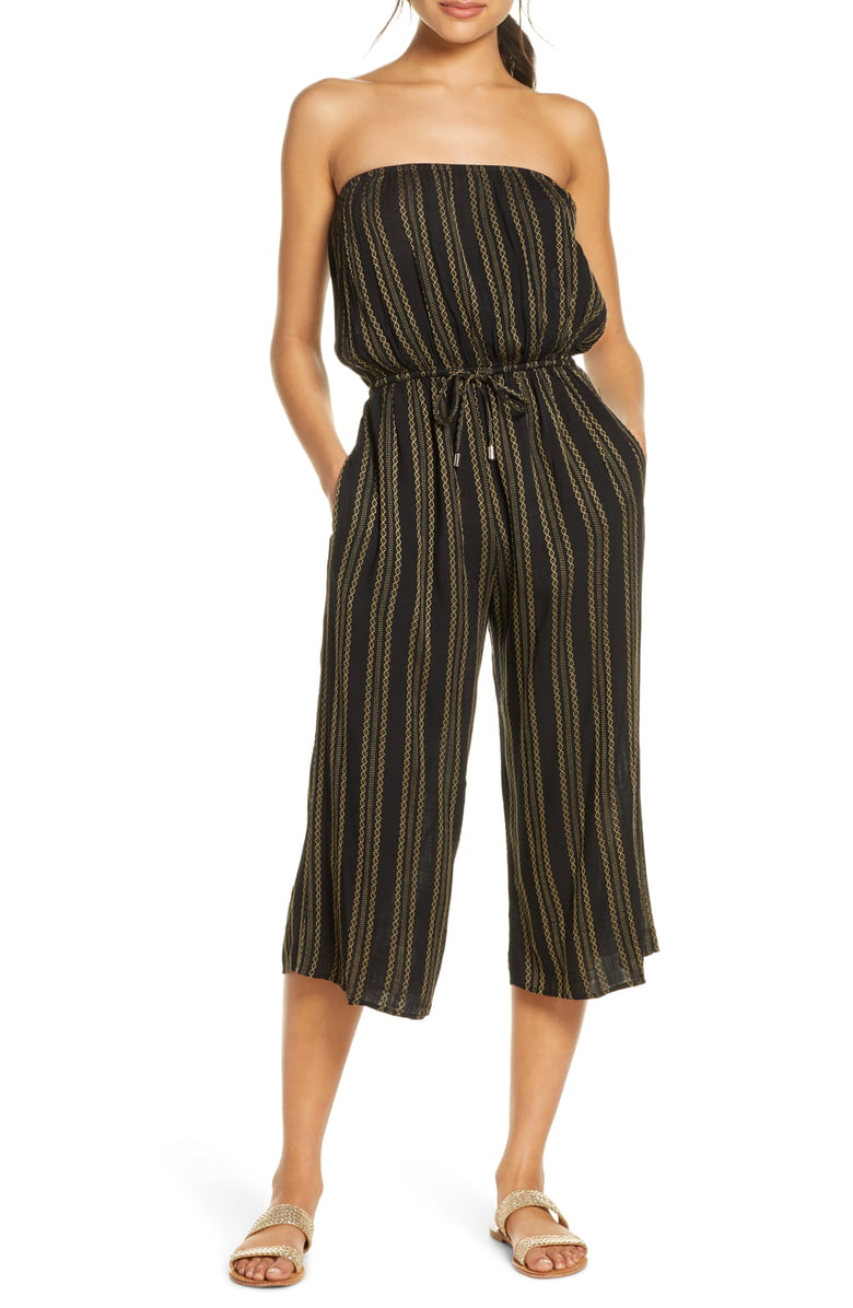 Strapless Cover-Up Culotte Jumpsuit, Main, color, BLACK/ GOLD