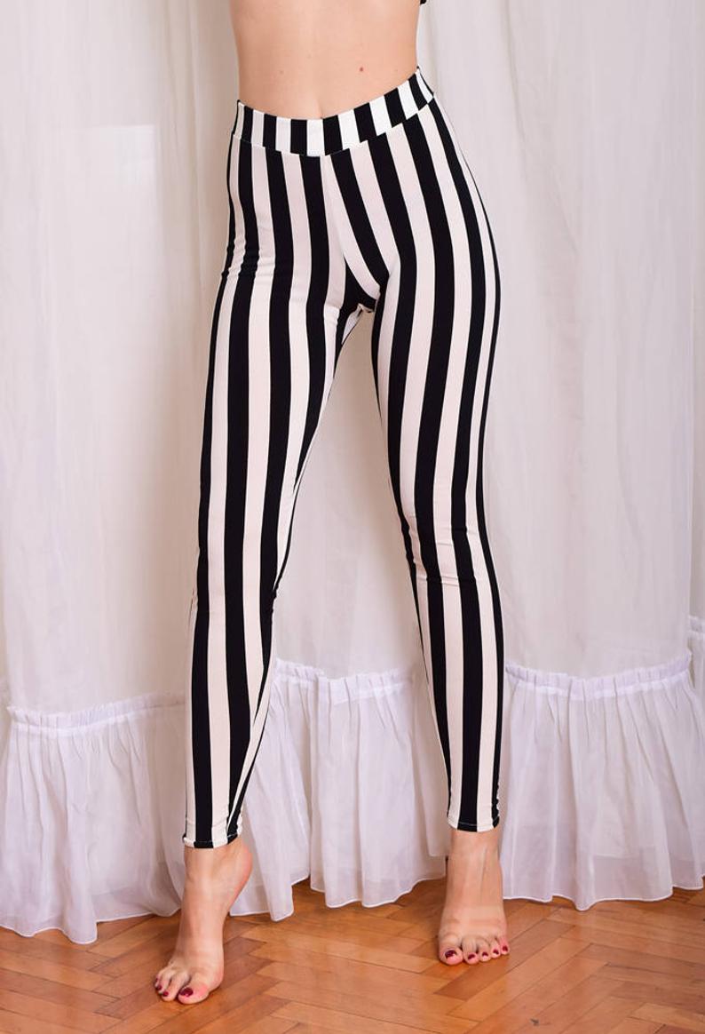 Striped Beetlejuice Leggings. Black and White Vertical Stripe image 0