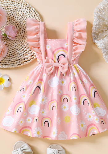 Summer Girl's Flying Sleeve Foral Print Casual Dress