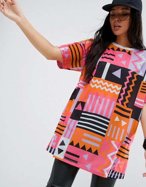 Super Oversized T-Shirt in 80s Geo-Tribal Print