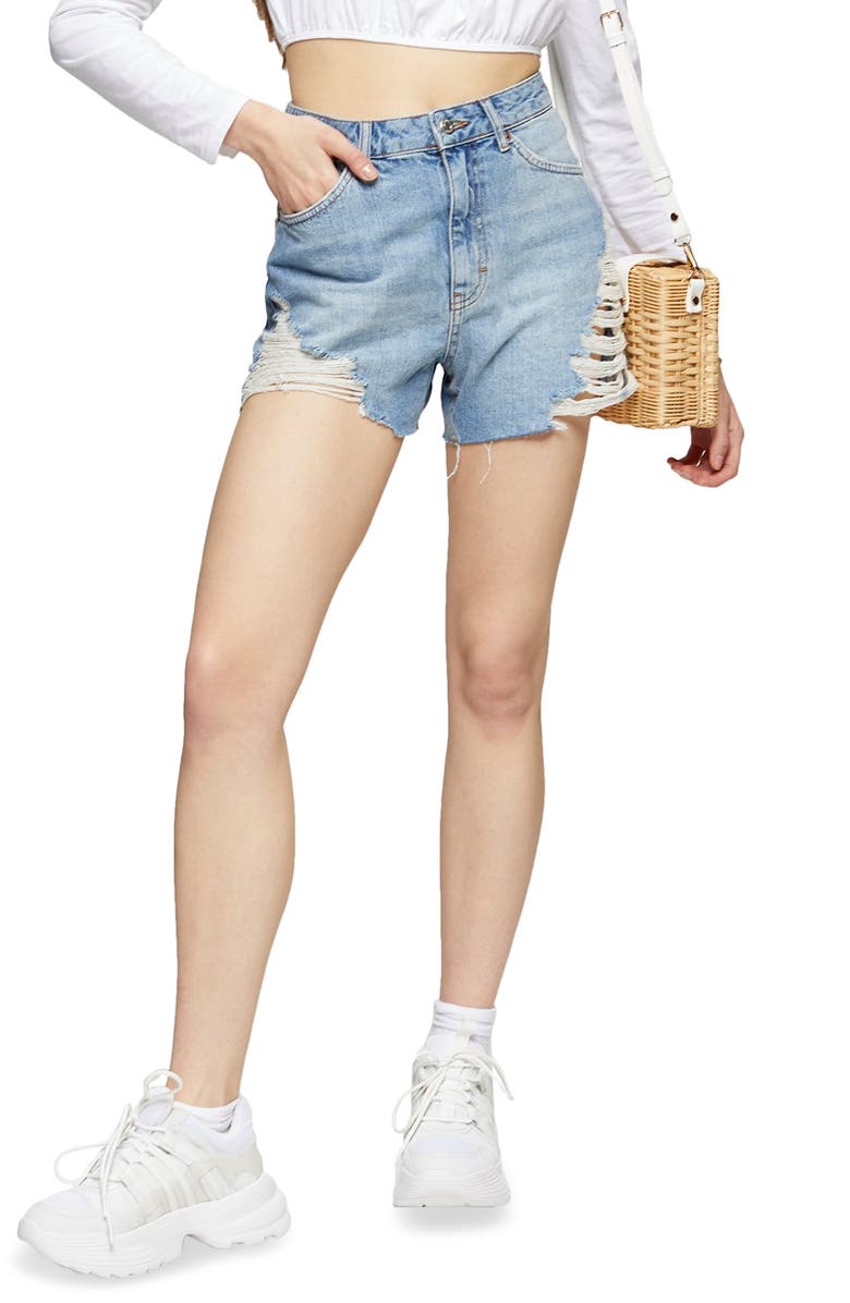 Super Rip Denim Mom Shorts, Main, color, MID DENIM
