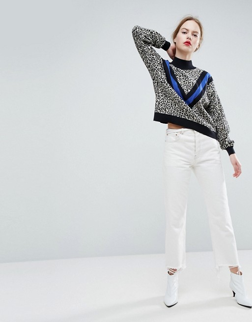 Sweater in Leopard with Sports Stripe
