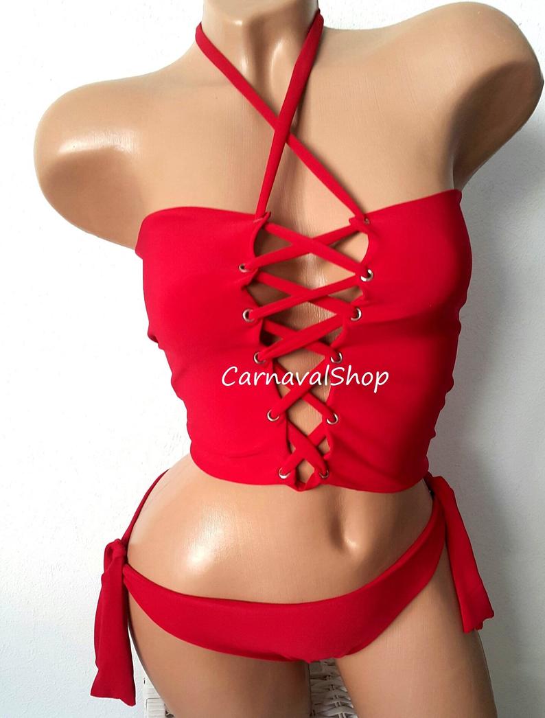Swimwear Swimsuit Red Bikini Mayokini Set Bustier Full Coverage Bottom Lace Up Bikini Top Sexy Bikini Set Festival Cloth Gift for Her