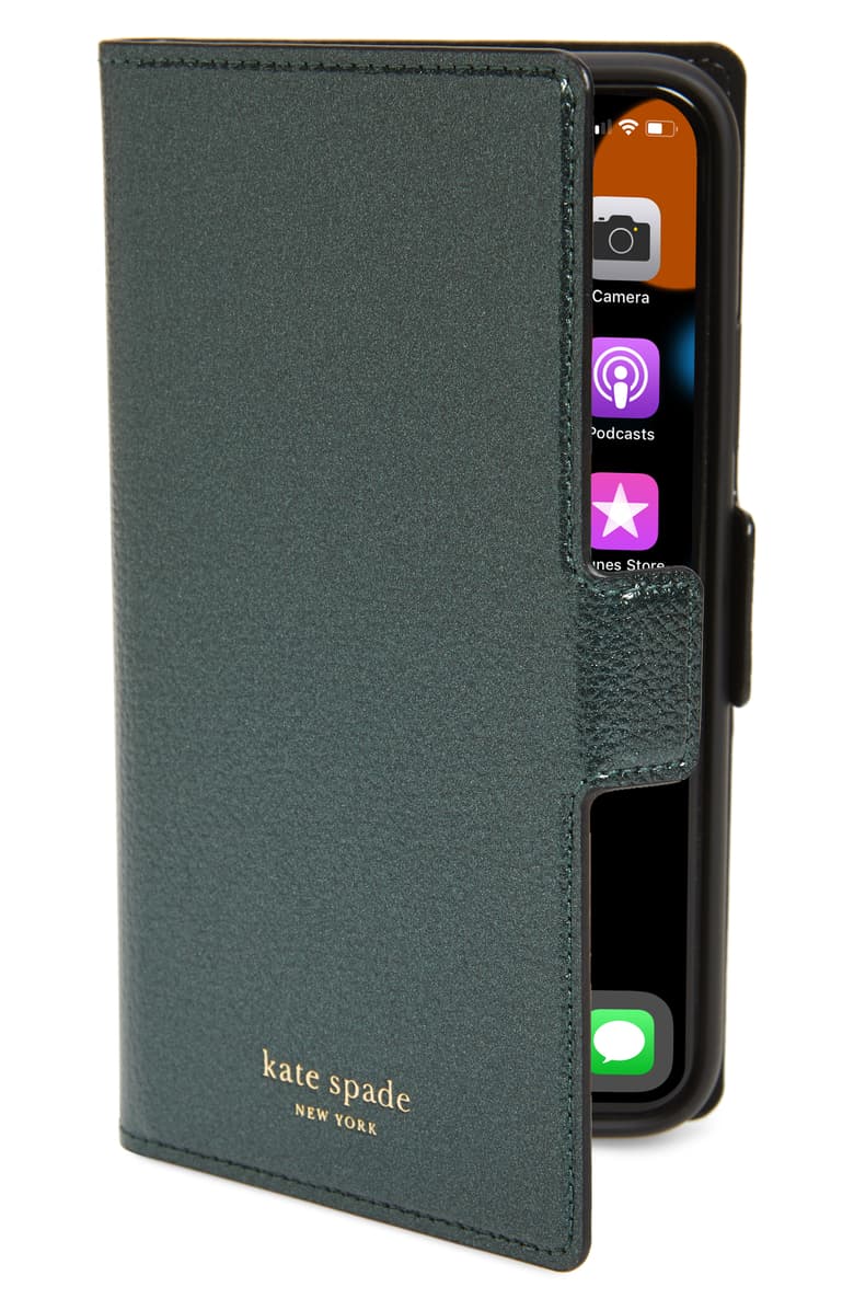 sylvia magnetic wrap iPhone X/XS/XS Max & Xr folio, Main, color, DEEP EVERGREEN METALLIC