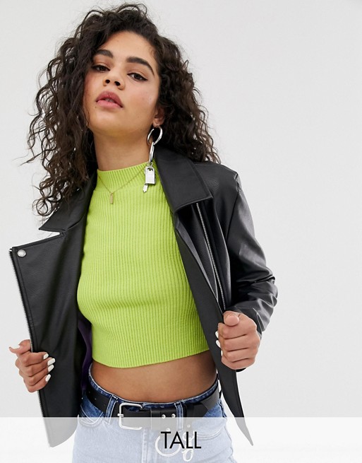 Tall leather look biker jacket