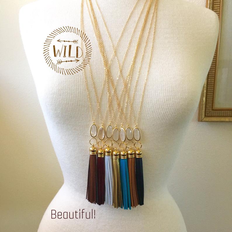 Tassel Necklace Long Leather Tassel Necklace Bohemian Tassel image 0