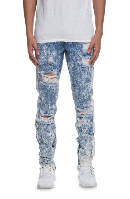 The Daytripper Tape Striped Distressed Denim in Acid Wash Blue