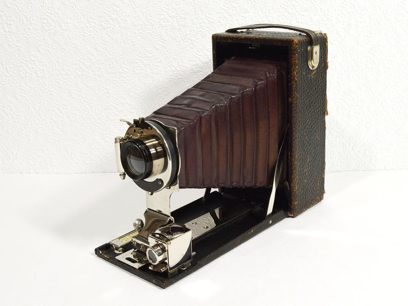 The Premo Camera No. 1- Antique Folding Camera, Eastman Kodak Camera from 1906 with Maroon Bellows, Quarter Plate Tintype Plate Camera
