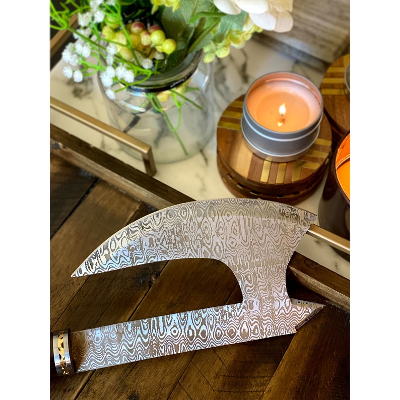 The Wilderness Companion: Damascus Steel Blade Axe with Rosewood Handle, Brass and Steel Spacers, and Leather Sheath