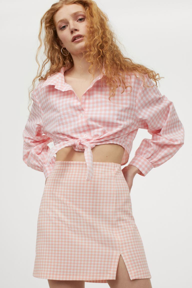 Tie-hem Cotton Shirt - Powder pink - Ladies