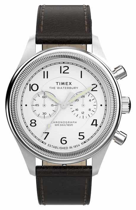 Timex® Waterbury Metropolitan Chronograph Leather Strap Watch, 41mm