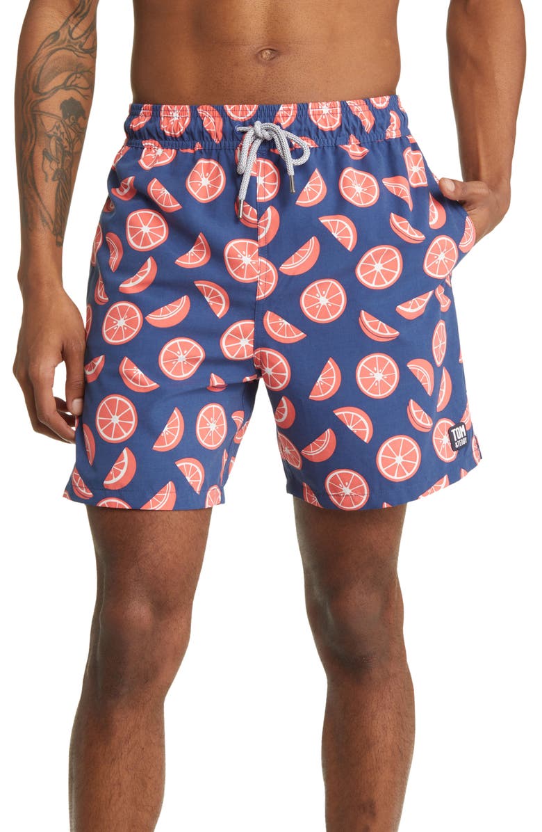 Tom & Teddy Citrus Swim Trunks, Main, color, Blue & Rouge
