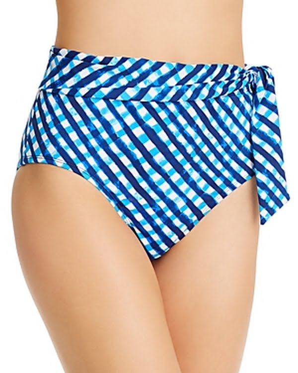 Tommy Bahama Gingham High-Waist Bikini Bottom, Size Large