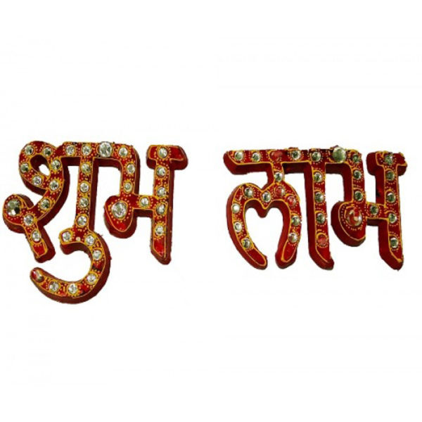 Traditional Wooden Kundan Shubh Labh (Set of 2)