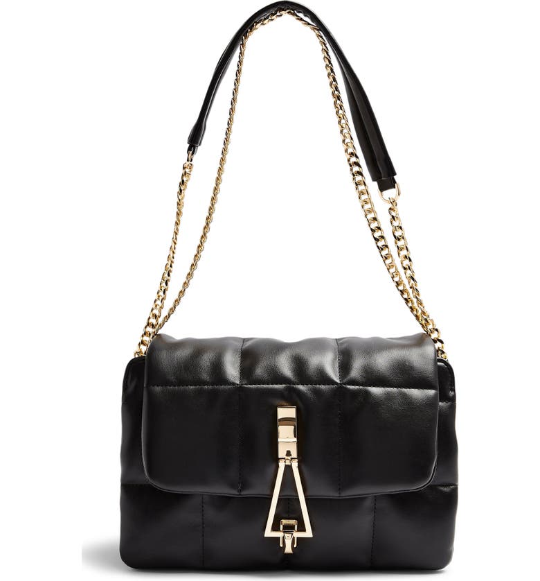 Triangle Quilted Shoulder Bag, Main, color, BLACK