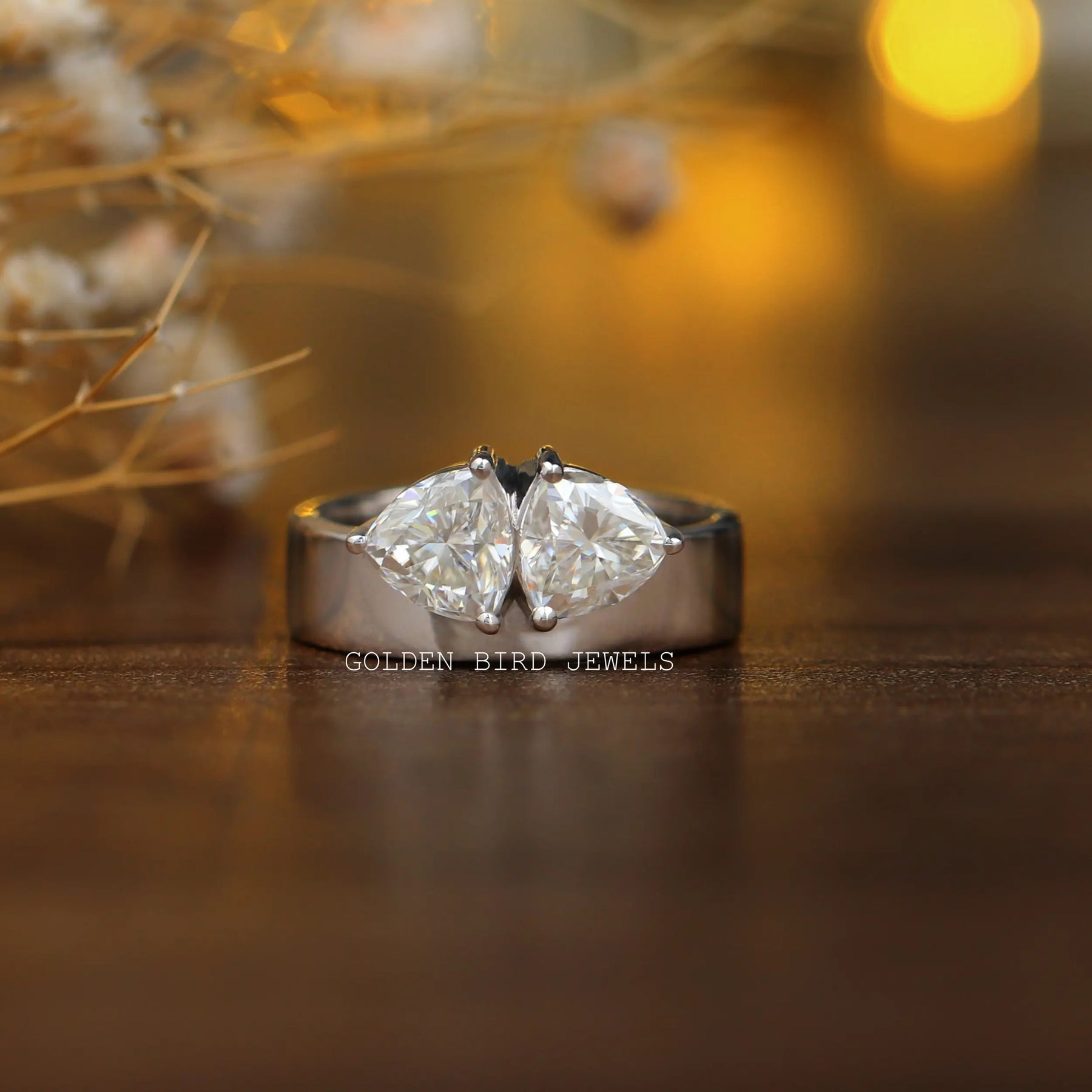 Trillion Cut Moissanite Two Stone Engagement Ring